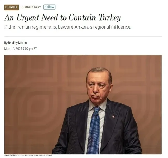 WSJ'deki makalede, İran'daki yönetimin ABD-İsrail müdahalesi sonrası devrilmesi senaryosuna dayalı olarak oluşacak boşluğun Türkiye tarafından doldurulmaması için "kontrol altına alınmalı" çağrısı yapılarak NATO üyeliğinin gözden geçirilmesi istendi.