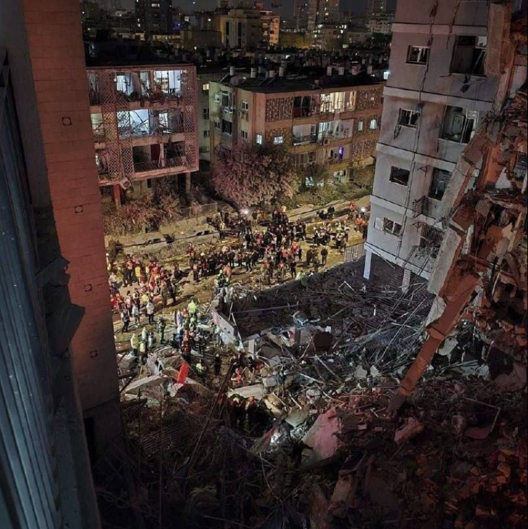 İsrail ordusu, füze parçalarının bazı noktalara düştüğünü açıklarken, 450 kilogramlık bir füzenin doğrudan isabet ettiği kaydedildi. Patlamaların etkisi geniş bir alana yayıldı, birçok noktada hasar oluştu. Bölgeden gelen görüntülerde binaların ağır hasar aldığı ve enkaz alanlarının oluştuğu görüldü. Arama kurtarma ekiplerinin zamana karşı yarıştığı ifade edildi.