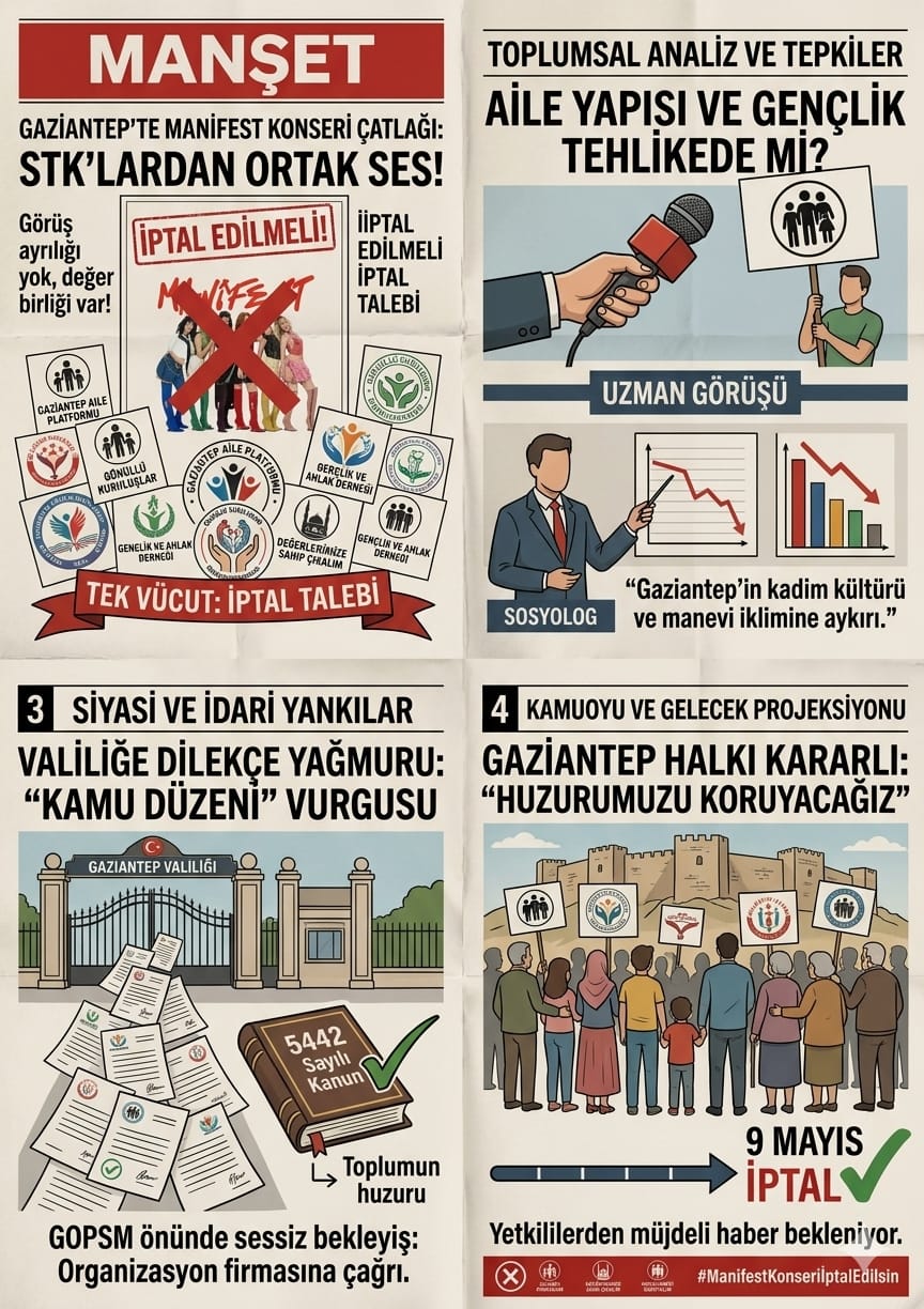 Gaziantep’te 9 Mayıs’ta yapılması planlanan “Manifest” konseri, şehrin kültürel dokusu ve toplumsal değerleriyle bağdaşmadığı gerekçesiyle büyük bir tepki dalgasına yol açtı.