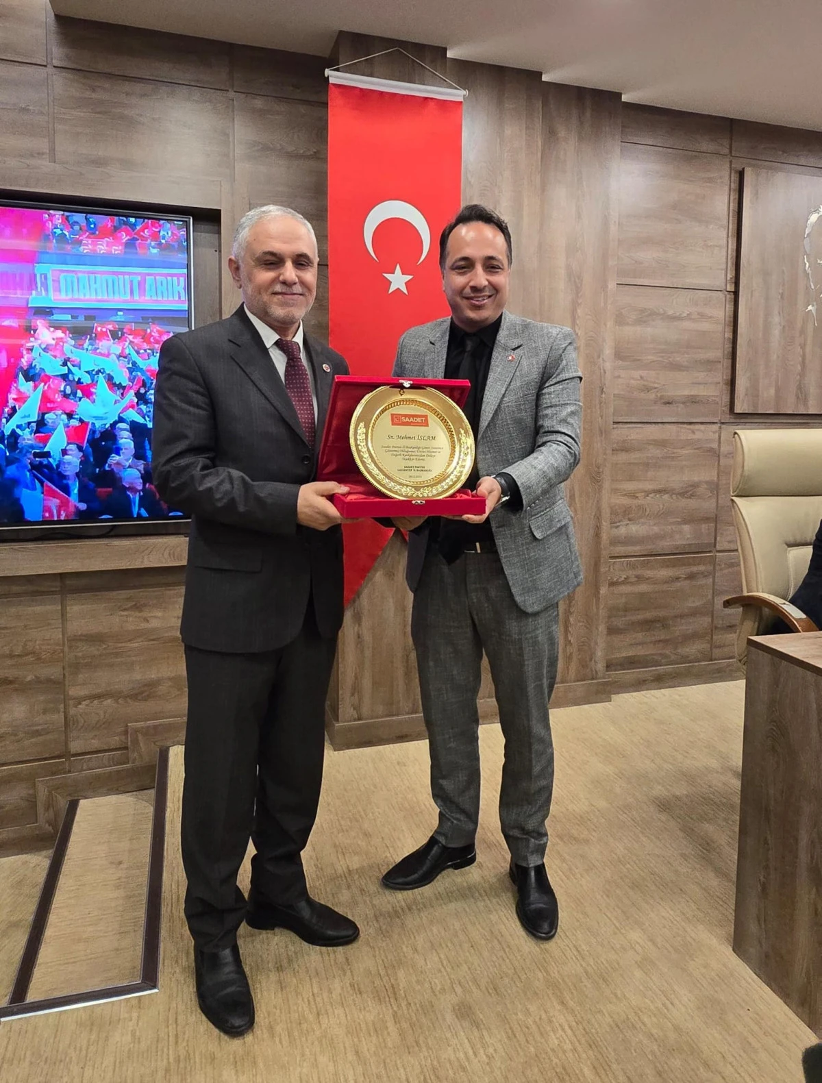 Toplantıda daha sonra, görevini devreden Saadet Partisi Gaziantep eski İl Başkanı Mehmet İslam bir konuşma yaptı. İslam konuşmasında, “Görevimi yıllarca gücüm nispetinde en iyi şekilde yapmaya çalıştım ve yaptım” ifadelerini kullandı. Konuşmasının ardından kendisine, partiye sunduğu hizmetlerden dolayı plaket takdim edildi.