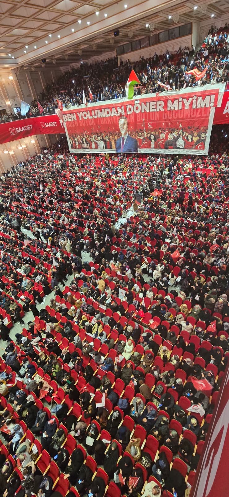 Yaklaşık 30 bin kişinin katıldığı programda teşkilatların ortaya koyduğu yüksek motivasyon dikkat çekerken, salonda oluşan atmosfer Saadet Partisi’nin seçim sürecine güçlü bir başlangıç yapıldığını gözler önüne serdi.