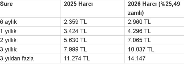 Türkiye İstatistik Kurumu tarafından bugün açıklanan Ekim ayı enflasyon rakamlarıyla birlikte yeniden değerlendirme oranlarında belli oldu. 2026 yılında geçerli olacak yeniden değerleme oranı yüzde 25,49 oldu. Buna göre Pasaporttan ehliyete birçok alanda zam oranı belli oldu.