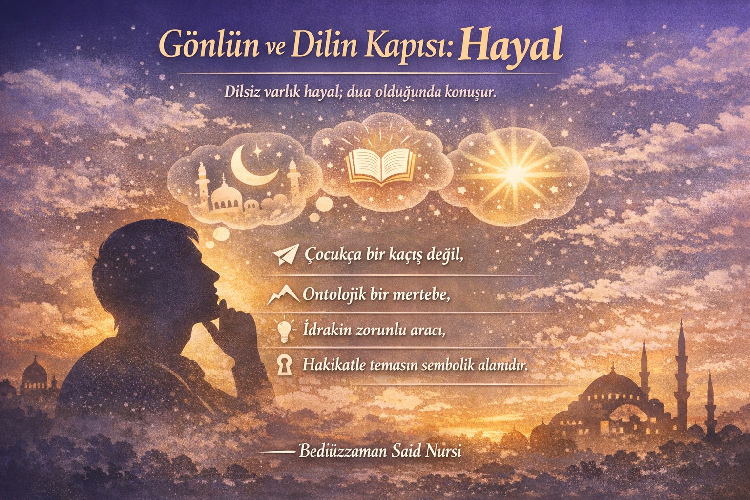 Eğer hayalimizi aklın rehberliğine, kalbin nezaketine ve ruhun istikametine verirsek; hayal kurmak bir kaçış değil, bir yükseliş olur.